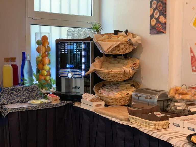 Щоранку для гостей сервірують сніданок “шведський стіл”. У цьому районі є багато кафе та ресторанів, де подають піцу та страви Романьї.